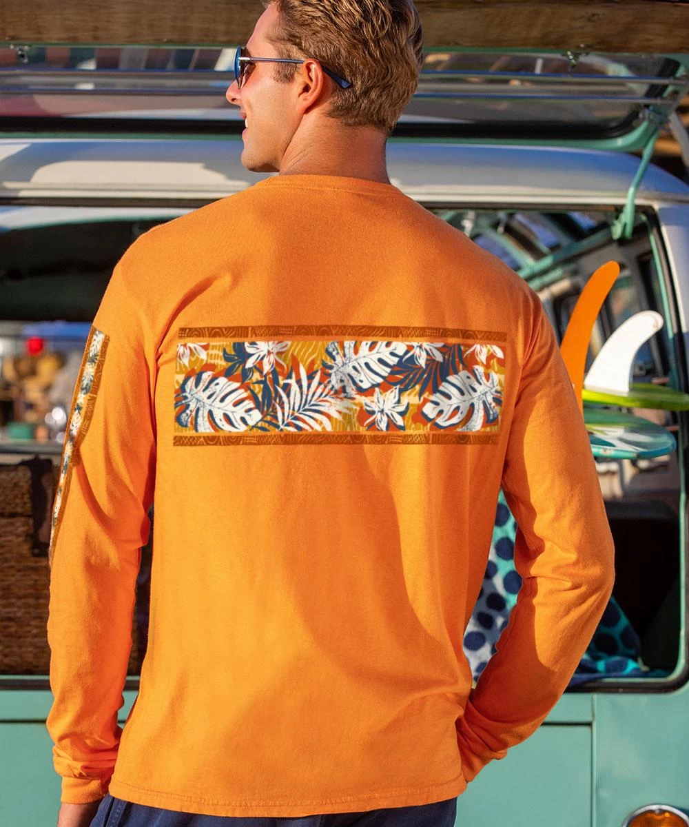 Just as the warmth and power of the sun gives life to Hawaii’s lush vegetation, the same can be said of the sunny hue of this apricot tee bringing a special vibrancy to these plant portraits. A new version of the classic Crazy Shirts band design, this tee is sure to grow on you. Made using our exclusive specialty dyeing process that uses real apricots and featuring 100% combed ring-spun cotton. This t-shirt also has 50+ SPF protection to keep you feeling cool, calm and protected all year long. We only use environmentally friendly water-based inks that penetrate the material’s fiber resulting in more vibrant colors, softer feel and artwork that doesn’t crack or peel. Plus, it is proudly printed in the United States for quality you can see and designs that stand the test of time.
