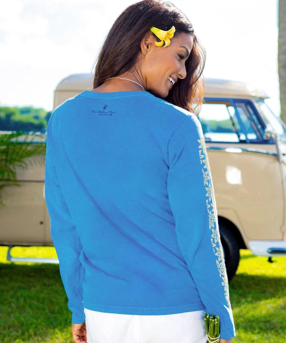 Tropical Pua Band – Blue Hawaii Dyed Long Sleeve Crewneck T-Shirt